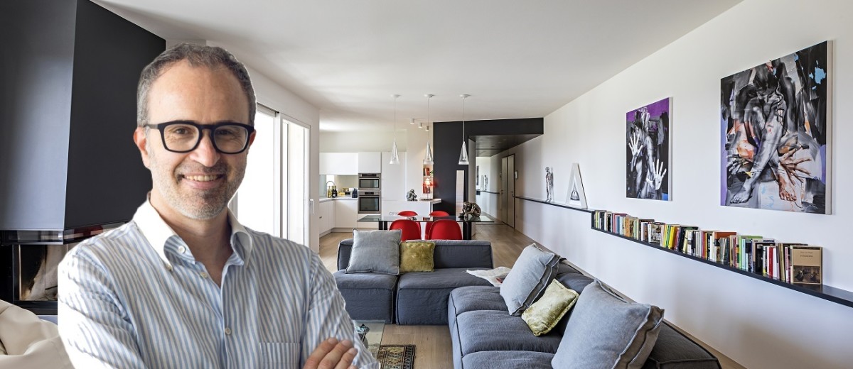 An attic in Padua, designed for a lively and dynamic couple, is characterized by fluid spaces with the presence of numerous design pieces which are counterpointed by selected works of art.