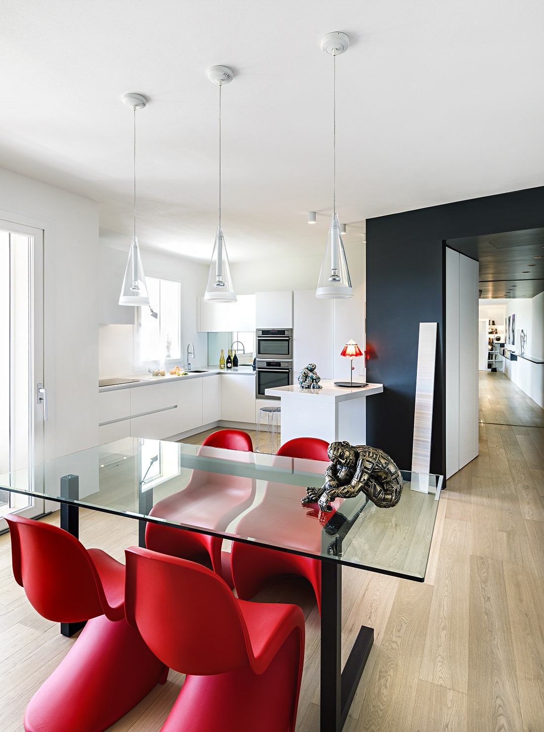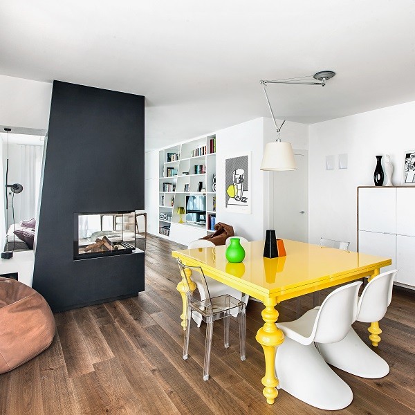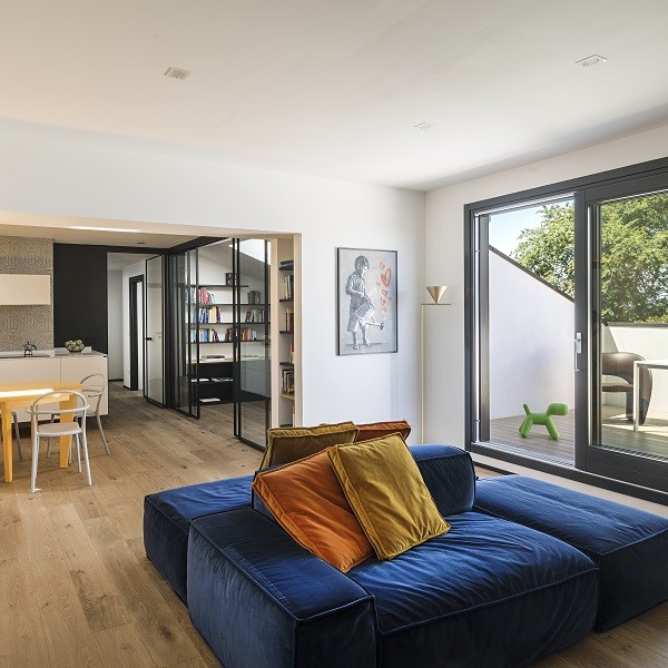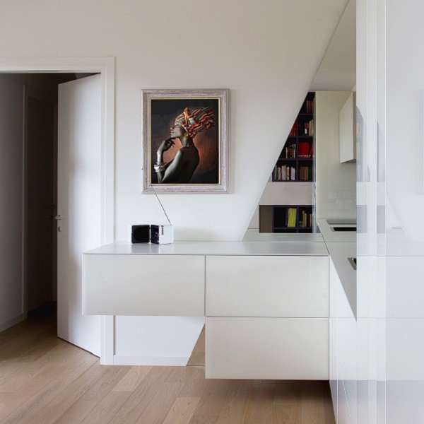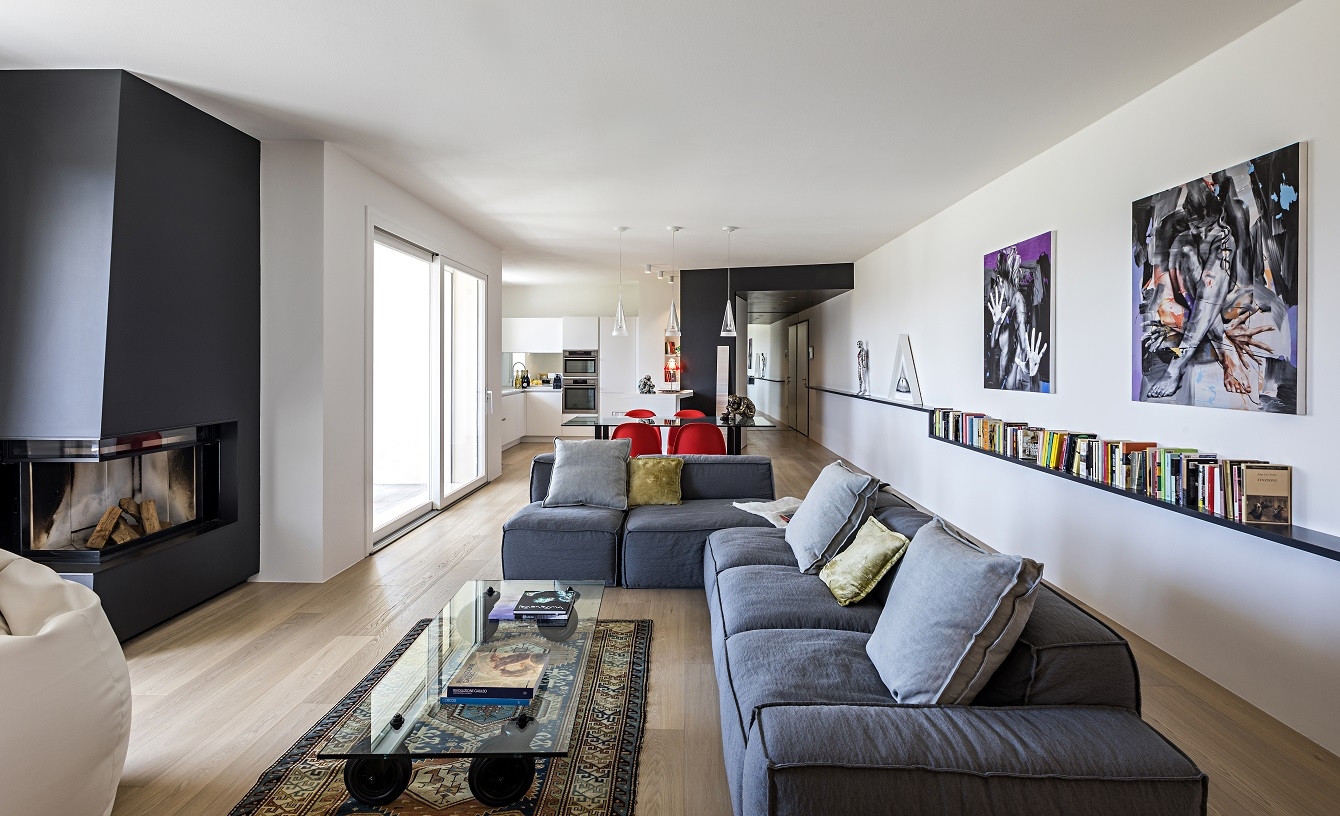In this modern penthouse, located in Padua, the dividing line between open and closed spaces, between modern and contemporary, between form and function is not exactly established, and we arrive at a sort of emotional suspension that involves and amazes.
