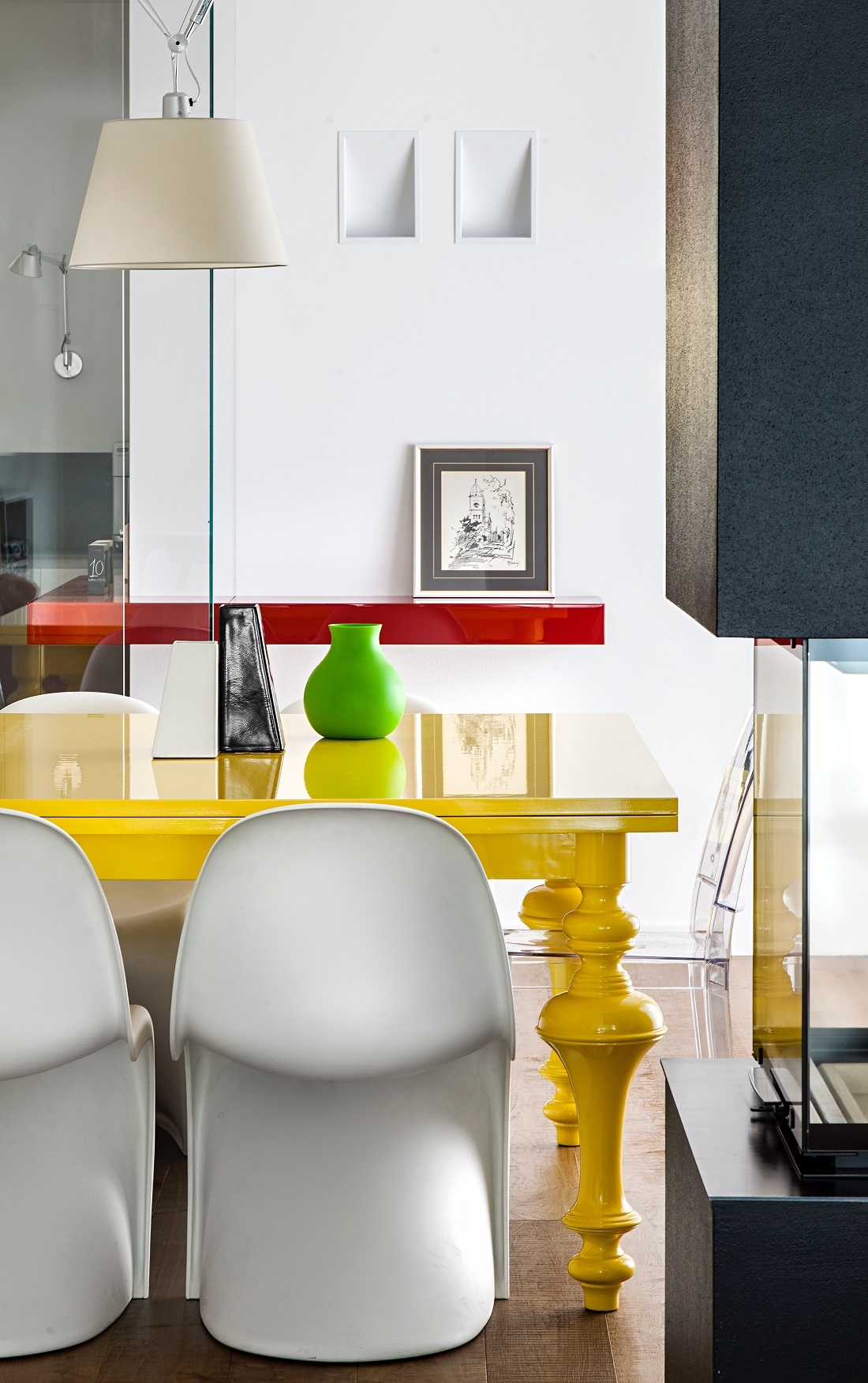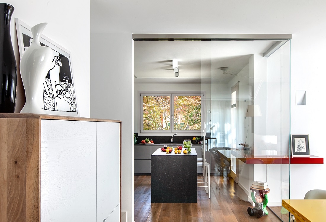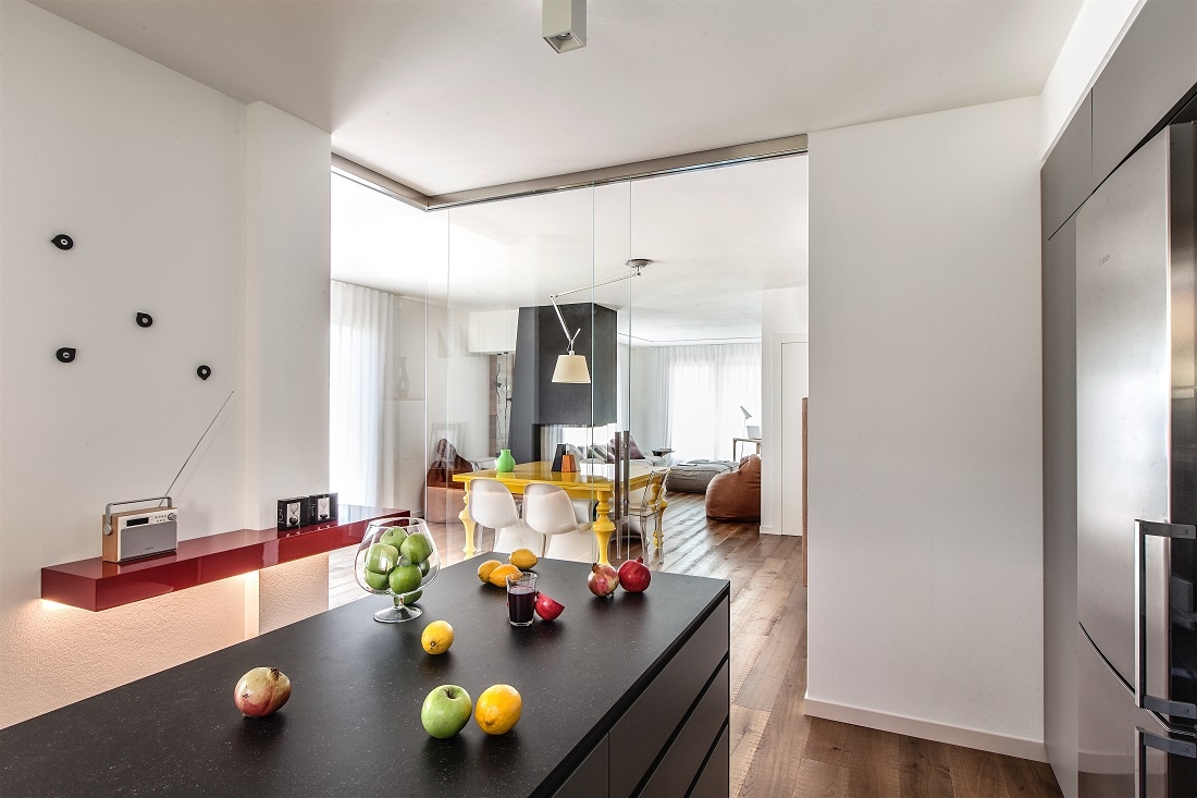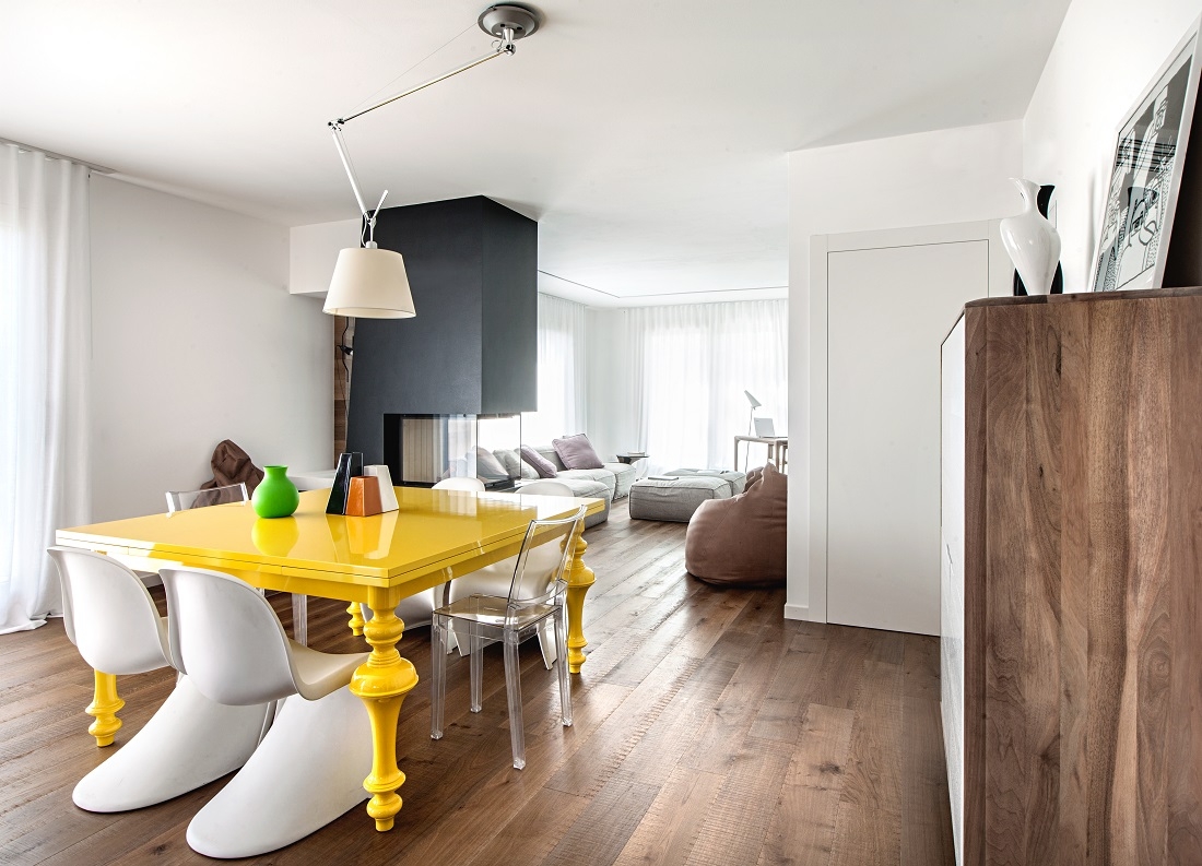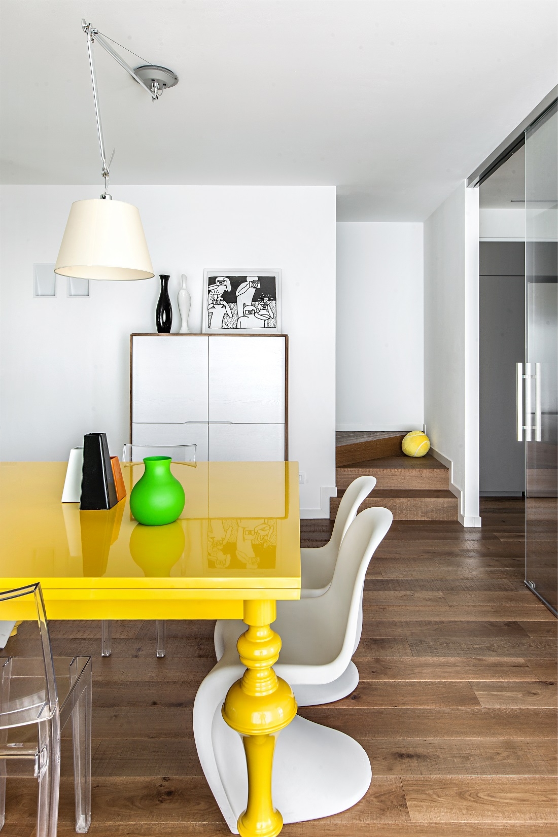 Designed for a large family, this house is characterized by a light, unconventional, sober elegance and at the same time animated by vibrant color combinations.