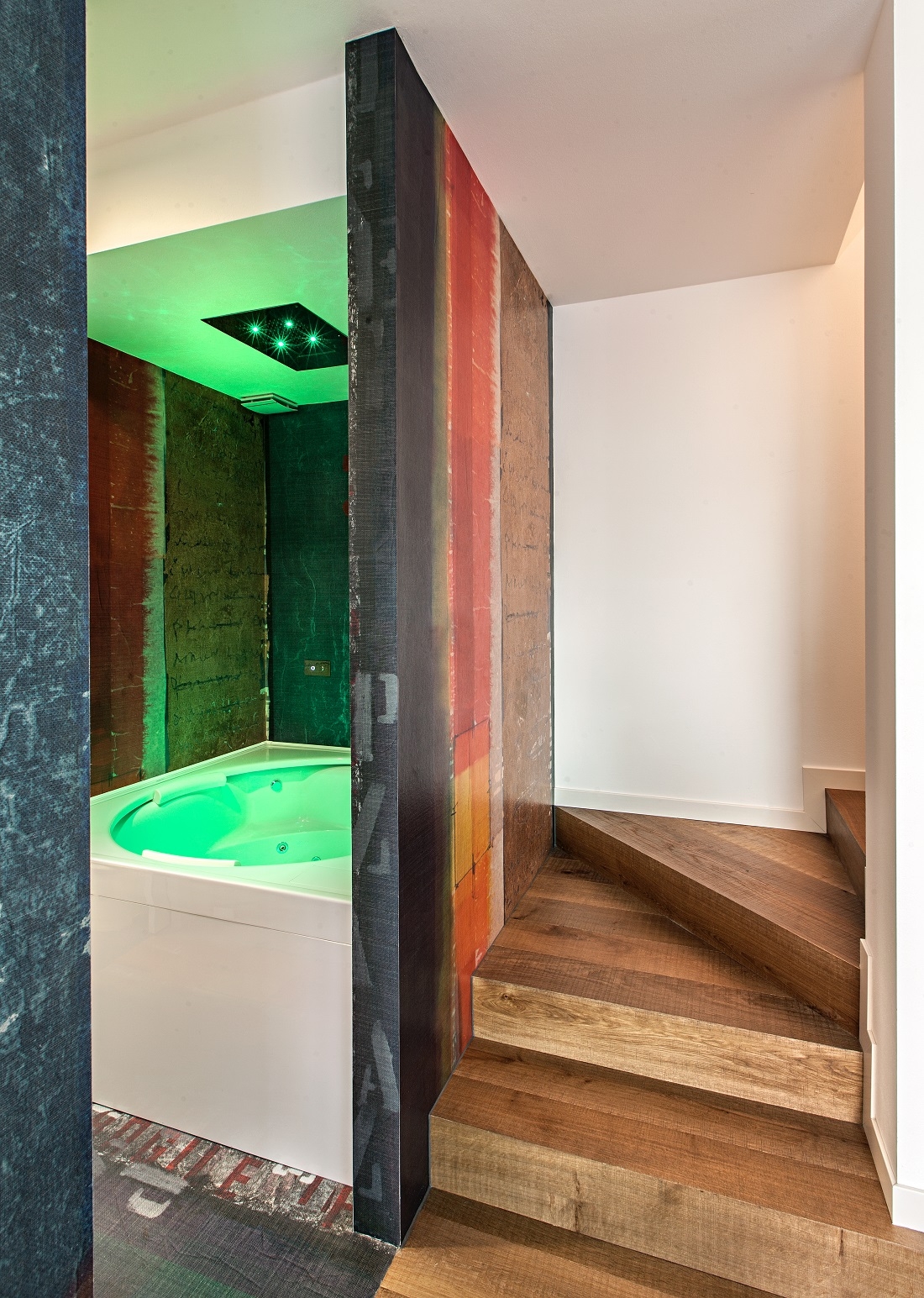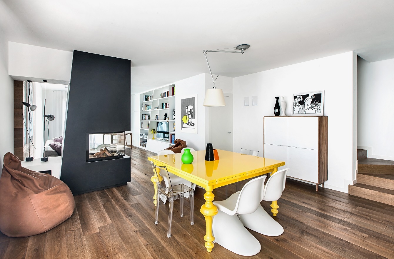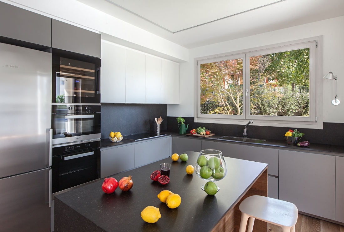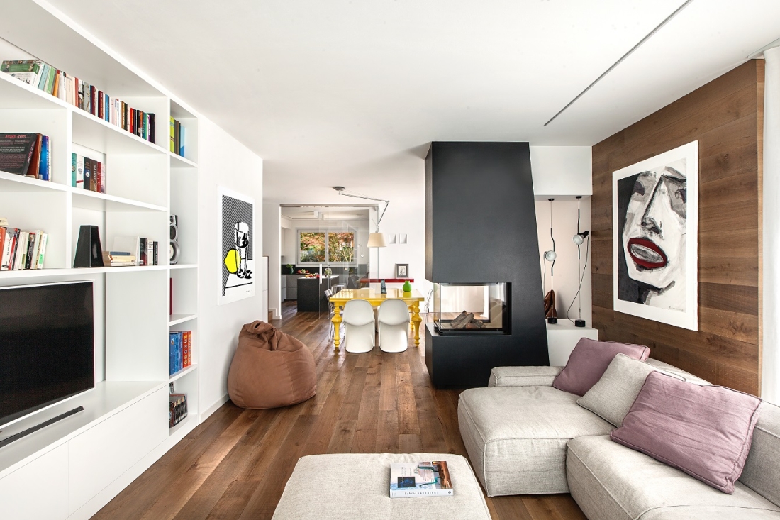 Designed for a large family, this house is characterized by a light, unconventional, sober elegance and at the same time animated by vibrant color combinations.